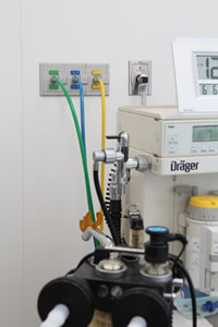 当院では手術室に医療ガス集中配管システムを導入し、医師はもとより看護師も日頃からトレーニングを行い安全に努めています。